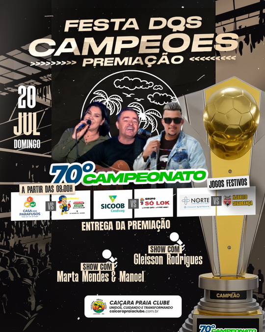 Vai começar o 70º Campeonato Caiçara Praia Clube de Futebol. Fique ligado na tabela de jogos...